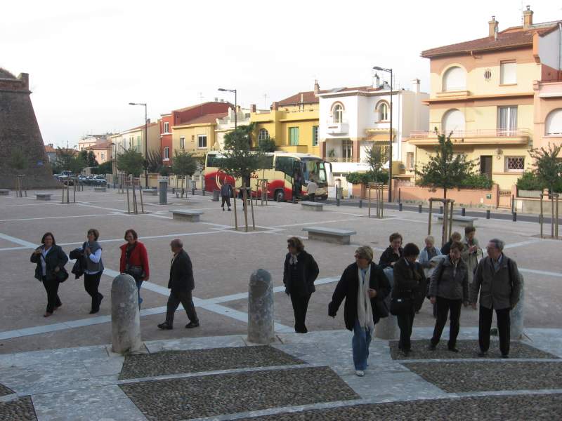 Una vez en Perpiñán, una parte del grupo, conducido por Josep Alabau, da un paseo por el barrio antiguo, desde el Castellet hasta la Catedral de San Juan Bautista. Por el camino nos detenemos para fijarnos en los edificios de la Lonja y del Ayuntamiento, y admirar las esculturas de Maillol. Entramos en la catedral, de estilo gótico, pero no podemos ver el altar mayor porque se encuentra en obras de restauración.