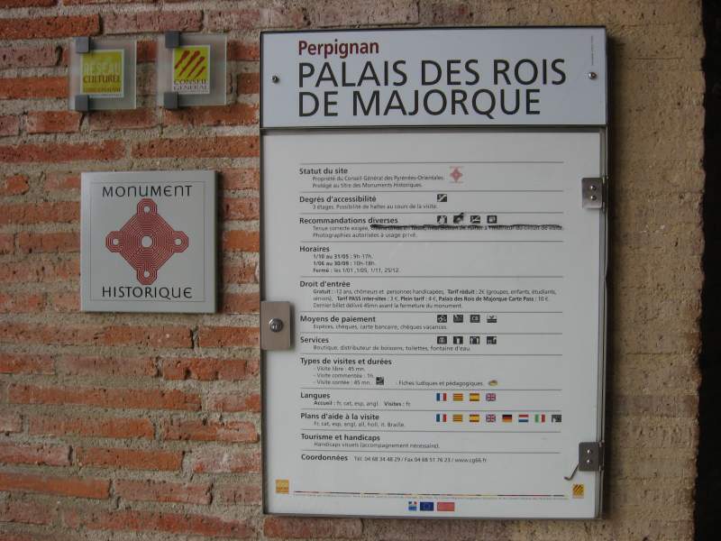 Llegamos al Palacio de los Reyes de Mallorca, una magnífica construcción de estilo gótico civil catalán, amurallada y rodeada por un foso. Se accede por la puerta de una de las torres, y lo primero que ve el visitante es el gran patio interior, cuadrado, con arcadas, con dos capillas superpuestas, que sobresalen del conjunto y lo presiden. El amigo e historiador Josep Alabau nos hace de guía y explica, entre muchas otras cosas, que Perpiñán, en la Edat Media, era la segunda ciudad de Cataluña y la capital del Reino de Mallorca, integrado por el Rossellón, las Islas Baleares, la Cerdanya y Montpelier. Jaume I el Conquistador dejó este reino en herencia a su hijo, Jaume II de Mallorca, que hizo construir la residencia real que hoy visitamos.